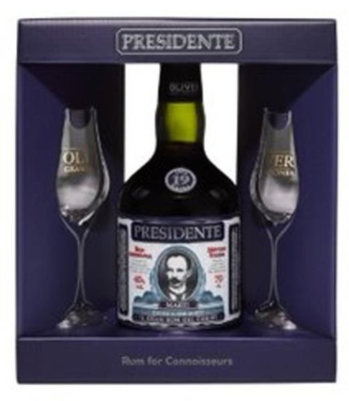 Jde o devatenáctiletý rum, který zrál v sudech po Bourbonu. Je mahagonové až třešňové barvy, s příjemně sladce vyváženou vůní čokolády a karamelu. Chuť je komplexní s nádechem rozinek, vanilky, medu a karamelu na začátku, přes ovocné tóny přecházející až do tónů čokolády a toffee, které obaluje skvostný tón doutníkového kouře. Rumy Presidente dozrávají v posledních letech v sudech po sherry, které jim dodá jedinečnou a neodolatelnou chuť. Rum Presidente jsou svými vlastnostmi vhodnou alternativou k rumu Diplomatico. Balení v dárkovém boxu se dvěma skleničkami. Výrobce: Oliver&Oliver Barva: mahagonová až třešňová Vůně: čokoláda, karamel Chuť: karamel, vanilka, tofee Objem: 0,7 litru Procento alkoholu: 40%