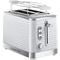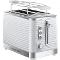 Prémiový topinkovač na 2 krajíce s vysokým leskem a chromovými prvky v designu texturovaných vlnek Nastavitelný stupeň opečení Funkce vysokého vysunutí pečiva Modře podsvícená tlačítka pro funkce přerušení, rozpékání a rozmrazení Odnímatelný tác na drobky Mřížka pro ohřívání pečiva