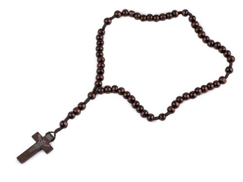 Růženec z dřevěných kulatých korálků vás potěší především svým příjemným přírodním designem. Horní část má rozdělenou na 5 skupin po deseti korálcích. Dole je zakončený dřevěným křížkem, který má z jedné strany stříbrný potisk. Jednotlivé korálky spojují drhané šňůrky. Růženec vyniká svou lehkou hmotností. Je ideální pro osobní modlitby a meditace, poskytuje klid a soustředění na duchovní cestě. Můžete jej používat během tradičních modlitebních rituálů nebo jako symbol víry, který můžete mít stále u sebe. Je vhodný jak pro každodenní použití, tak i jako dekorativní prvek ve vašem interiéru. Nejedná se o náhrdelník.