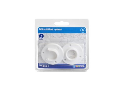 Set celé a půlené skříňové růžice, jež slouží k upevnění záclonových a šatních tyčí do otvorů a skříní.