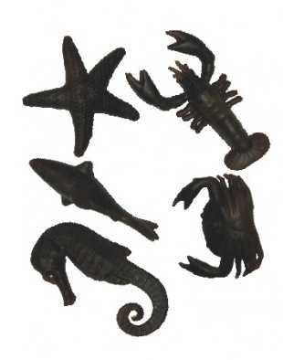 Pochoutka pro psy ve tvaru plodů moře s rybí příchutí.