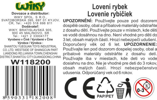 Chytání rybiček. Délka síťky 23 cm. Balení obsahuje síťku a 6 rybiček.