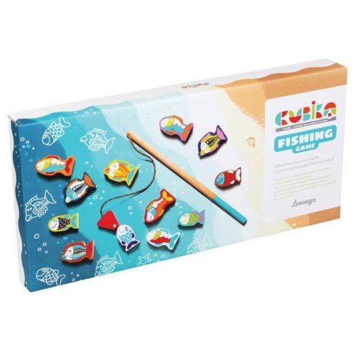 CUBIKA je nová značka dřevěných hraček vyrobených pouze z ekologicky pěstovaného dřeva s velmi precizním opracováním a líbivým designem. Rybolov je známá hra pro děti, jejímž cílem je vylovit co nejrychleji nejvíce rybiček z rybníka. K tomu slouží dva pevné dřevěné pruty opatřené na svých koncích magnetem, protože každá rybička má v sobě zabudovaný kovový plíšek. Rybky pak vyskakují z vody jako živé. Délka prutů 31 cm, délka tkaniček 30 cm. Rybičky ve 3 velikostech: 4,5 x 2x 3 cm, 6 x 2 x 3 cm a 6,5 x 2 x 3 cm. Sortiment hraček značky CUBIKA pomáhá dětem rozvíjet především senzomotorické schopnosti a dovednosti, logické myšlení, kreativitu, představivost a různé poznávací znalosti. Hračky jsou vyrobeny z nejkvalitnějšího javoru a buku a k barvení se používají též vysoce kvalitní barvy na vodní bázi, které jsou naprosto bezpečné pro děti a nemají žádný zápach. Všechny výrobky této značky mají německý certifikát TÜV a jsou vyrobeny dle evropské normy pro bezpečnost hraček EN 71. Nevhodné pro děti do 2 let. Vyrobeno v Evropě.