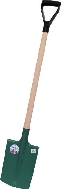 Zelený rýč - obdelník z kalené oceli. Povrchová úprava komaxit. Násada dřevěná s plastovým držadlem.