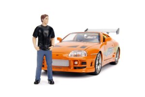 Kovový model auta Toyota Supra 1995 v měřítku 1:24 z filmu Rychle a zběsile. Otevírací dveře, kufr, kapota, odnímatelná střecha auta, figurka Briana O´Connera ve velikosti 7 cm. Velikost auta 21 cm.
