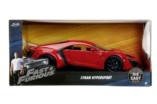 Kovový model auta Lykan Hyperspot v měřítku 1:24 z filmu Rychle a zběsile. Na volnoběh, otevírací dveře, kufr a kapota. Velikost 19 cm.