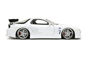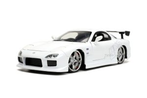 Kovový model auta Mazda RX-7 v měřítku 1:24 z filmu Rychle a zběsile. Na volnoběh, otevírací dveře, kufr a kapota. Velikost 20 cm.