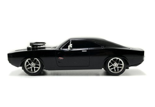 Dominikovo auto Dodge Charger 1970 na dálkové ovládání z akčního filmu Rychle a zběsile. 2 kanály (jezdí vpřed, vzad, vlevo a vpravo). Frekvence 2,4 GHz. Turbo funkce. Maximální rychlost 8,2 km/hod. Barva černá. V měřítku 1:24.