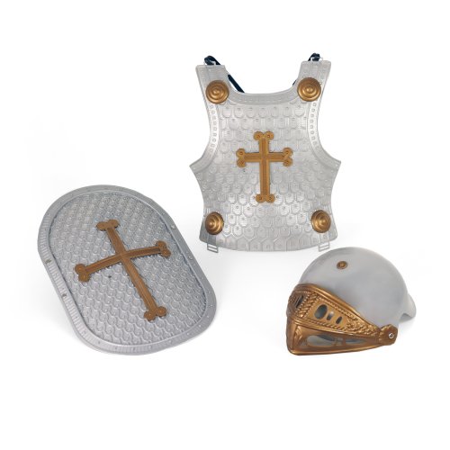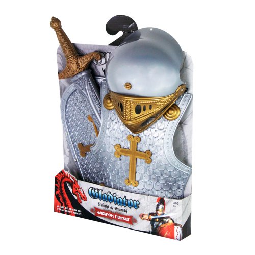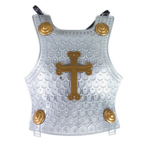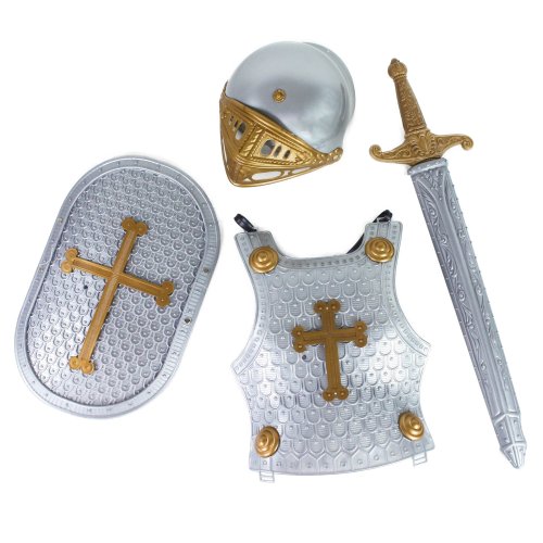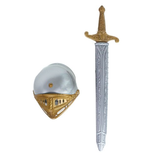 Exkluzivní sada pro opravdové rytíře! Balení obsahuje bronzový meč ve stříbrné pochvě, ochranný štít, helmu s nastavitelným krytem a rytířskou vestu. Vše je vyrobeno z PVC. Staň se opravdovým rytířem díky těmto doplňkům! Obvod helmy je cca 54 cm.