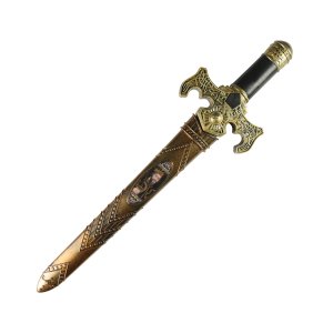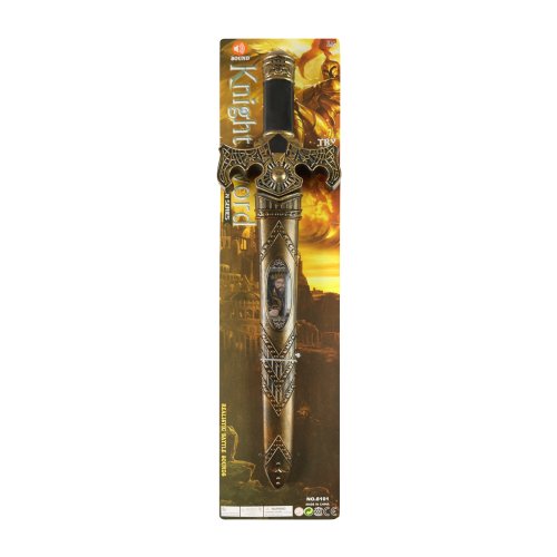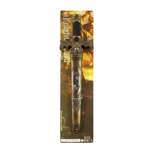 Rytířský meč s pouzdrem promění každé dítě v odvážného hrdinu! Malí rytíři mohou vyrazit do boje, chránit království a zažít spoustu dobrodružství na každém karnevalu či při domácí bitvě. Meč v délce 55 cm vydává zvuky. Pro zvuk je potřeba vložit do rukojeti 2 baterie typu AA, které nejsou součástí balení.