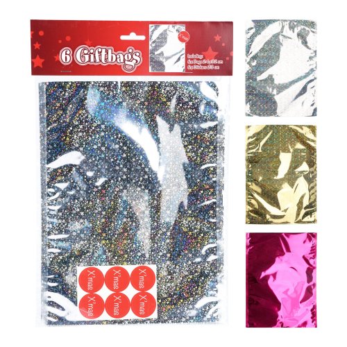 Sáček dárkový 32 x 24 cm (6 ks), samolepky pr. 3 cm (6 ks), dekor č. 1, mix barev.
