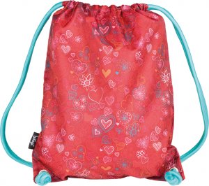 • Sáček na cvičky nebo přezůvky s motivem srdcí z pevného omyvatelného materiálu