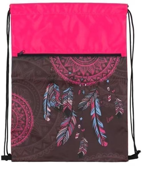 Školní sáček na přezůvky a cvičky vhodný pro žáky 1. stupně ZŠ.Školní sáček je vyroben z pevného a kvalitního materiálu.Rozměr sáčku 440 x 320 mm.Vodoodpudivý pevný materiál udrží věci v suchu.Kapsa na zip oddělí boty od ostatního oblečení.Stahovací šňůrka spojená se spodní částí promění sáček v malý batůžek na záda.Školní sáček je praktickým doplňkem školní aktovky pro uložení cviček či věcí na tělocvik.