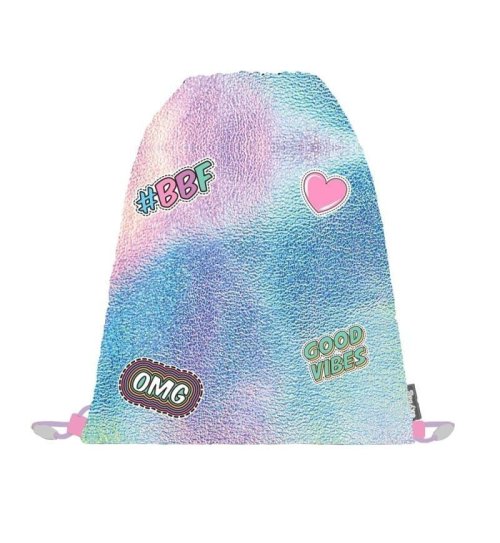 Sáček na přezůvky. Uzavírání stažením šňůrek, možnost nosit i na zádech nebo připevnit ke školnímu batohu. Materiál 100% polyester.