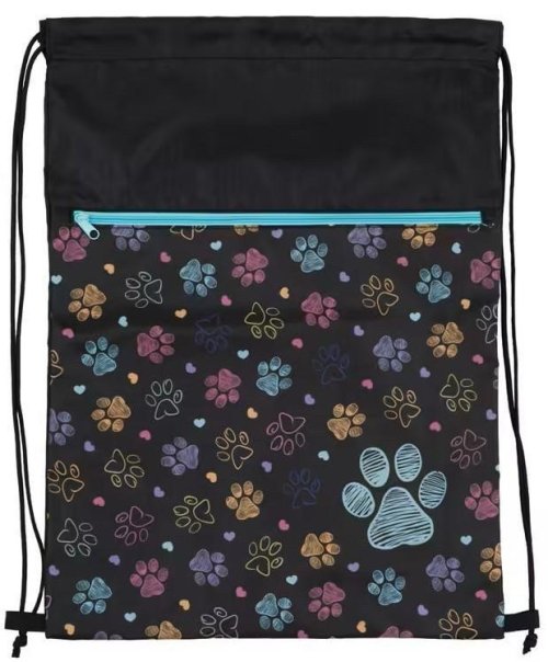 Školní sáček na přezůvky a cvičky vhodný pro žáky 1. stupně ZŠ. Školní sáček je vyroben z pevného a kvalitního materiálu. Rozměr sáčku 440 x 320 mm. Vodoodpudivý pevný materiál udrží věci v suchu. Kapsa na zip oddělí boty od ostatního oblečení. Stahovací šňůrka spojená se spodní částí promění sáček v malý batůžek na záda. Školní sáček je praktickým doplňkem školní aktovky pro uložení cviček či věcí na tělocvik.