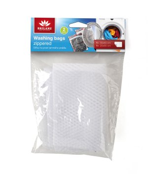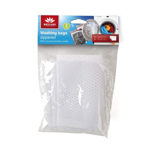 Síťka na praní jemného prádla BRILANZ obsahuje 2 síťky o velikostech 30 x 40 cm a 20 x 30 cm v bílé barvě. Síťky jsou uzavíratelné na zip. Síťka chrání záclony, spodní prádlo a jiné výrobky během praní a ždímání.