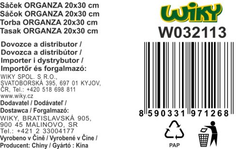 Sáček ORGANZA Vločky o velikosti 20x30 cm Vánoce. 2 barevné provedení: zlatý, stříbrný.