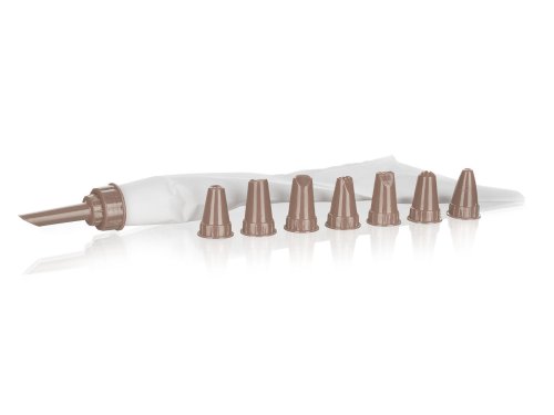 sada obsahuje: 1 x zdobící sáček 8 různých druhů trysek, materiál plast barva: hnědá