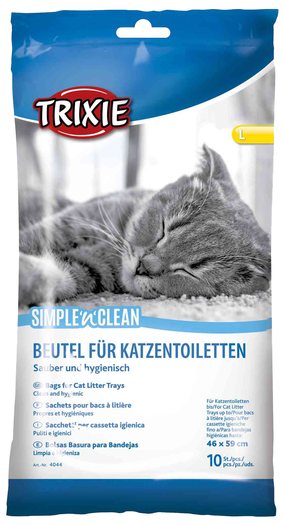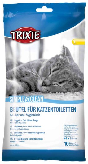 Sáčky pro kočičí toalety. Usnadňují čištění toalet. Fungují jako sáčky do odpadkových košů. Sáček se dává na dno toalety a nasype se na něho kočkolit, který se potom odstraní se sáčkem. Vyhnete se ušpinění toalety. Balení obsahuje 10 ks.
