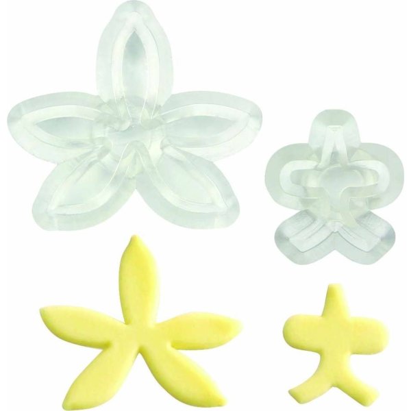 Sada 2ks vykrajovátek pro výrobu jedlé orchideje na dort. Rozměr hotové orchideje: 2cm.