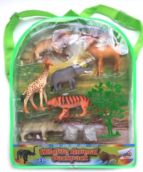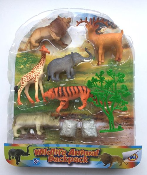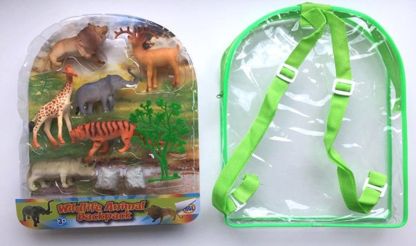 Sada figurek divokých zvířat se kterými si můžeš hrát a vymýšlet jejich příběhy. Balení obsahuje šelmy i býložravce (lva, tygra, jelena, nosorožce, slona, žirafu), kameny a strom. Vše je baleno v průhledném batůžku s nastavitelnými popruhy. Velikost jedné figurky cca 8 x 5 x 3 cm. Velikost batohu: 28 x 23 x 4 cm. Nevhodné pro děti do 3 let.