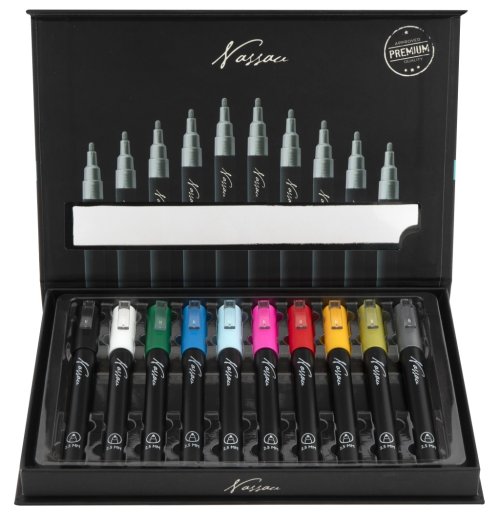 Sada akrylových fixů – přeměňuje obyčejné předměty v neobyčejné. Jsou vytvořené tak, aby drželo skoro na každém povrchu – na plátně, keramice, dřevu, skle i plastu. Tyto univerzální akrylové fixy dodávají bohatou barevnost na dlouhou dobu (stálobarevné). Sada obsahuje 10 akrylových fixů.