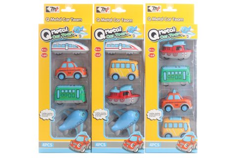 Sada kovových dopravních prostředků. Balení obsahuje 4 různé dopravní prostředky o velikosti cca 6,5 cm. Rozměry balení cca 11 x 32 x 4,5 cm. Věk 18m+