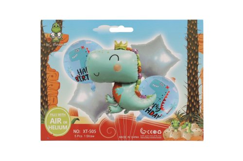 Veselá nafukovací sada balonků s motivem dinosaura potěší každého malého oslavence! Uvnitř balení najdete 5 kusů balonků v různých tvarech – včetně roztomilého dinosaura s korunkou, kulatých balonků s nápisem „Happy Birthday“ a dvou hvězd.