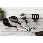 Sada obsahuje čtyři nepostradatelné kousky náčiní, které usnadní vaření, smažení, míchání i servírování. Díky nylonovému provedení jsou maximálně šetrné k vašemu nádobí a zároveň odolné vůči vysokým teplotám. Praktická nožička zabraňuje dotyku s kuchyňskou linkou, takže si udržíte pracovní plochu čistou i během vaření.