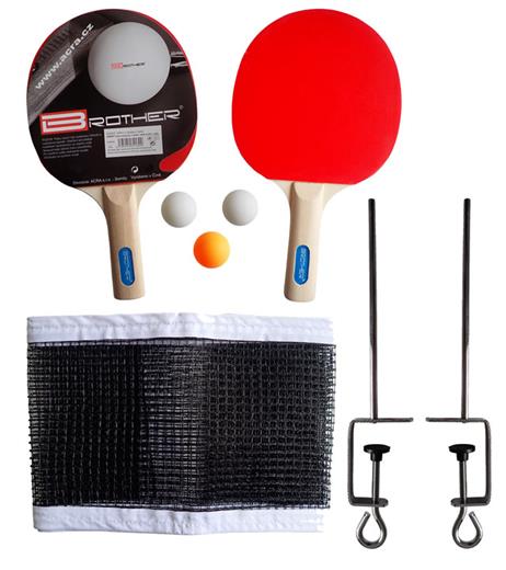 Sada na stolní tenis, 2 pálky 1-star+ 3 míčky, síťka, držák jednoduché konstrukce. Doporučené pro úplné začátečníky. Skladba výrobku umožňuje získat kompletní sadu vybavení pro hru.