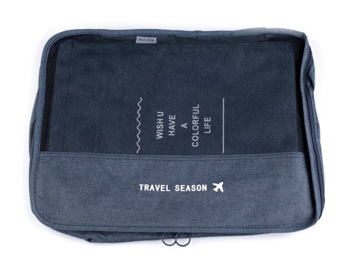 Sada 7 pouzder je vyrobená z pevného materiálu. Je praktická nejen na cestách. Pouzdra mají spoustu zajímavých funkcí. Pomohou systematicky roztřídit spodní prádlo, oblečení a další věci. Díky nim pohodlně a přehledně uložíte věci do kufru, batohu i skříně. Ocení je i studenti na internátech a kolejích. Je složená ze 4 prostorných textilních pouzder s uchem k přenášení se zapínáním na zip, jedno z nich je určené na boty, a dále ze 2 plochých pouzder, která se také zapínají na zip a 1 stahovacího pytlíku. Rozměry prostorných pouzder jsou: 30 x 40 x 12 cm, 28 x 33 x 12 cm (obě pouzdra mají popruhy na upnutí vložených věcí), 20 x 30 x 11 cm a pouzdro určené na boty má rozměry 20 x 33 x 12 cm. Rozměry plochých pouzder jsou: 27 x 33 cm a 25 x 33 cm, toto pouzdro se dá pomocí patentů sepnout a rozdělit na dvě poloviny. Rozměry stahovacího pytlíku jsou 25 x 34 cm.