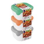 Sada 3 čtvercových dóz Curver 3 x 0,8 l se perfektně hodí do každé domácnosti. Přinesete si v ní svačinu či oběd do práce a bez obav ji umístíte do mikrovlnné trouby, abyste si lahodný pokrm ohřáli. Dózu využijete i na skladování potravin ve skříni, v lednici nebo dokonce v mrazáku. Údržba dóz je snadná. Umyjete je ručně či v myčce na nádobí a můžete je znovu použít.
