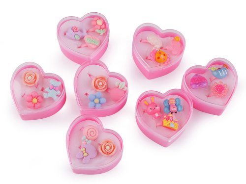 3 dětské prstýnky jsou zabalené v plastové dóze ve tvaru srdce, která má průhledné plastové víčko. Prstýnky jsou ozdobené barevnými 3D ozdobami s různými motivy, u dětí jsou velice oblíbené. Zadní strana prstýnku je otevřená, mají univerzální velikost určenou pro drobné dětské prsty. Vnitřní průměr 14,2 mm odpovídá standardní velikosti 44 - 45. Velikosti prstenů naleznete v naší tabulce. Balení 28 krabiček je v krabici s potiskem, bez víka, o rozměrech 24 x 37 x 3,5 cm.