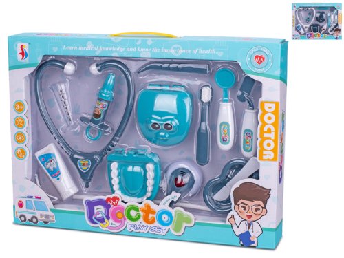 Sada doktor na baterie se světlem a zvukem - mix barev (bílý stetoskop, zelený stetoskop)