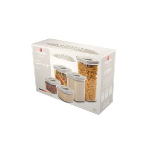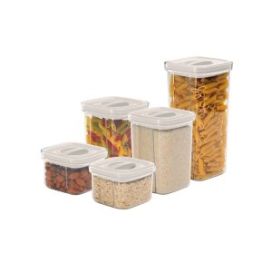 - Materiál: plast- 2 ks 460 ml box: 11,2*11,2*8 cm- 2 ks 1100 ml box: 11,2*11,2*15 cm- 1 ks box na 1500 ml: 11,2*11,2*23 cm- Barva: krémová sahara- Praktické skladování- Vzduchotěsný systém otevírání/zavírání …