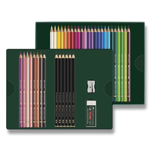 Pastelky:, * vysoký obsah velmi kvalitních pigmentů zaručuje odolnost proti světlu a intenzitu barev, * tloušťka tuhy 3,8 mm, * silná hladká tuha na olejové bázi, * voděodolná, * nerozmazává se, Grafitové tužky:, * vysoká kvalita měkkého dřeva zajišťuje snadné ořezávání, * speciální SV technologie vkližování zamezuje lámání tuhy při pádu tužky na zem, * povrchové laky na vodní bázi v zájmu ochrany životního prostředí, * obsahuje grafitové tužky trvdosti HB, 2B, 4B, 6B, 10B, 14B, Tip: Ke kreslení můžete potřebovat i umělecké papíry.