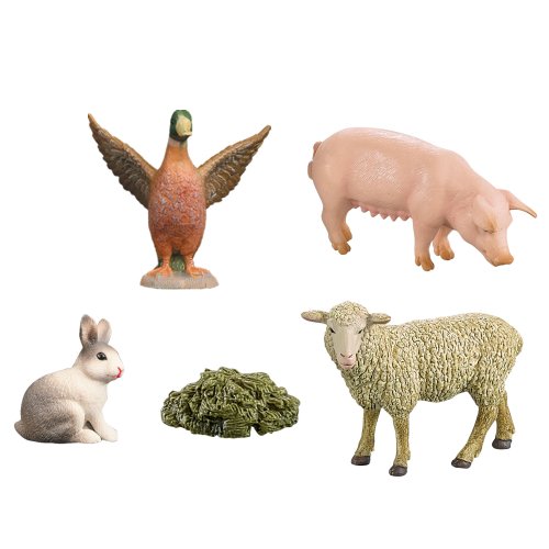 Farmářská zvířátka, která vypadají jako živá! Sada obsahuje zvířátka prasátko, zajíce, ovečku, kačenu a figurku farmáře, vše je vyrobeno z kvalitní, tvrdé gumy. Hračka je součástí kolekce Moje malá farma.