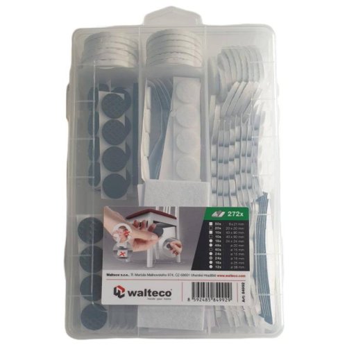 • Filcové podložky: 40x90 mm bílá - 10x, 40x90 mm černá - 10x, O 16 mm šedá - 24x, O 20 mm bílá - 48x, O 15 mm bílá - 24x