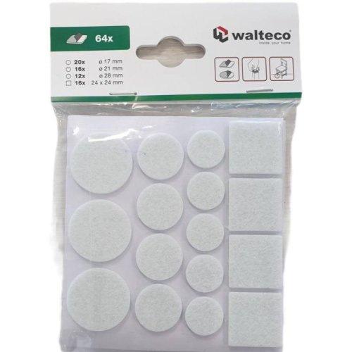 Sada obsahuje: Filcové podložky: O 17 mm - 20x, O 21 mm - 16x, O 28 mm - 12x, 24x24 mm - 16x
