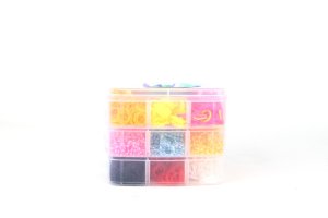 Sada gumiček Loom Band obsahuje celkem 3 000 kusů barevných pružných gumiček, které jsou rozděleny do tří průhledných plastových boxů s přehlednými přepážkami. Každý box je členěn na několik oddílů, což usnadňuje organizaci a výběr jednotlivých barev. Gumičky jsou v různých odstínech – najdete zde jasné neonové barvy jako žlutou, růžovou, oranžovou či zelenou, ale také jemnější pastelové tóny, dvoubarevné varianty a klasickou černou či bílou. Tento široký barevný výběr umožňuje vytvářet náramky a další ozdoby v různých barevných kombinacích a vzorech.