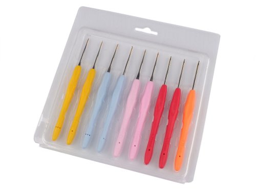 Sadu háčků na háčkování ocení každý, kdo rád háčkuje. Díky měkké silikonové rukojeti se pohodlně drží v ruce a nekloužou. Svou velikostí jsou háčky vhodné na tenké příze a bavlnky. Sada obsahuje 9 háčků následujících velikostí: 0,5; 0,8; 1; 1,25; 1,75. Kromě velikosti 1,75 jsou ostatní háčky v sadě 2x.