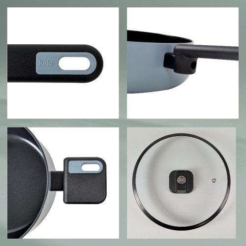 Moderní hliníková sada nádobí v kouřově modr barvě přináší do vaší kuchyně harmonii stylu, funkčnosti a pohodlí. Spojuje elegantní design s praktickými detaily, které ocení každý, kdo rád vaří a zároveň si potrpí na estetiku.