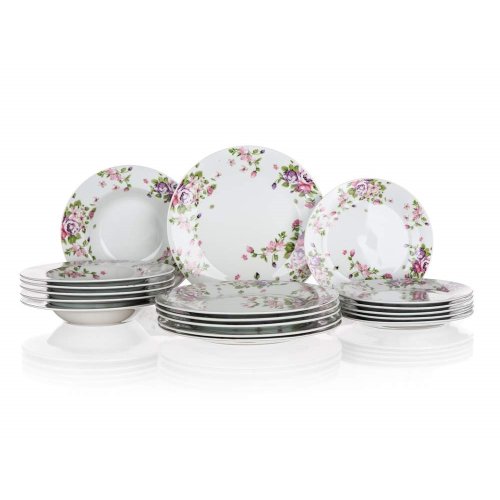 sada obsahuje: 6 x dezertní talíř, pr. 19 cm 6 x hluboký talíř, pr. 21,5 cm 6 x mělký talíř, pr. 24 cm