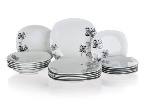 18dílná talířová sada square FLOREA je vyrobena z porcelánu. Talíře lze používat do mikrovlnné trouby a mýt v myčce na nádobí.