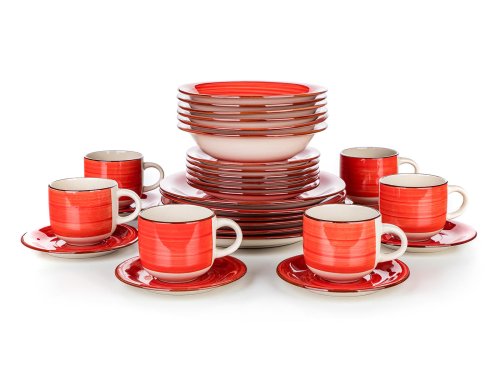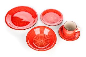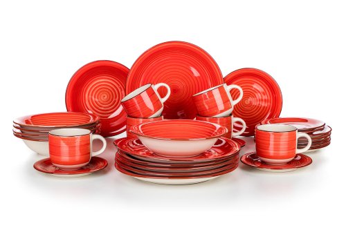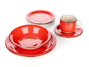 Sada jídelní SPIRAL RED, 30díl., keramická.