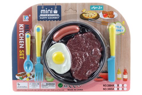 Sada potravin s příborem a talířkem. Baleno na blistru. Materiál plast. Rozměry balení 28,5x22x1,5 cm. Věk 3+