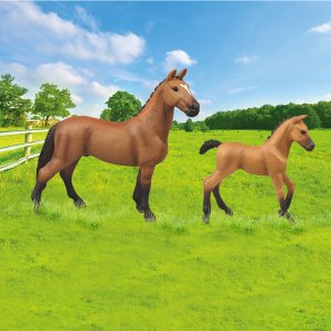 Figurka koně a hříběte v hnědé barvě s bílou skvrnou. Součástí balení také ohrada. Ideální pro milovníky koní. Tato hračka je součástí kolekce Moje malá farma.