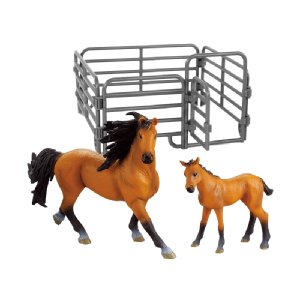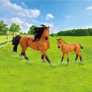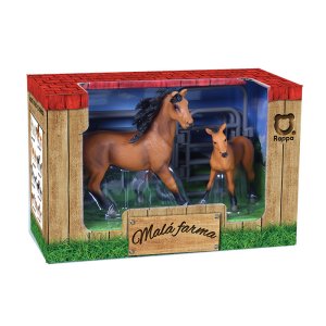Figurka koně a hříběte v hnědé barvě s tmavou hřívou. Součástí balení také ohrada. Ideální pro milovníky koní. Tato hračka je součástí kolekce Moje malá farma.