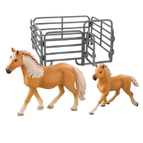 Figurka koně a hříběte v hnědé barvě se světlou hřívou. Součástí balení také ohrada. Ideální pro milovníky koní. Tato hračka je součástí kolekce Moje malá farma.