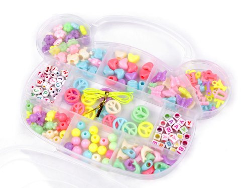 Plastový box s přihrádkami obsahuje mix plastových korálků různých barev i tvarů. Uvnitř najdete i pruženku na navlékání korálků. Náš tip: sada bude skvělým dárkem pro dívky, které využijí korálky na náramky nebo náhrdelníky.